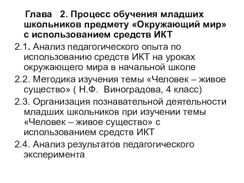 Глава  2. Процесс обучения младших школьников предмету «Окружающий мир» с использованием средств ИКТ 2.1.