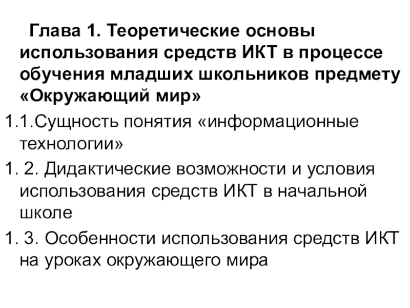 Глава 1. Теоретические основы использования средств ИКТ в процессе обучения младших школьников предмету «Окружающий