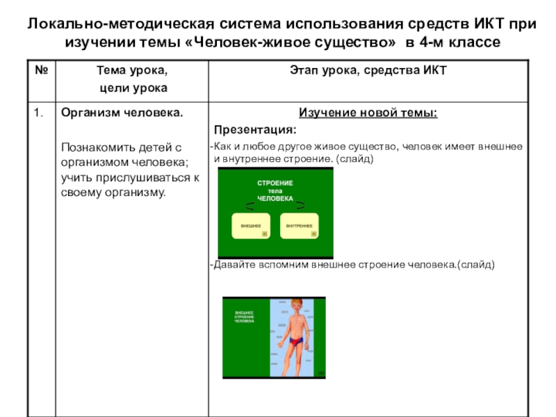 Локально-методическая система использования средств ИКТ при изучении темы «Человек-живое существо» в 4-м классе