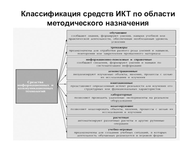 Классификация средств ИКТ по области методического назначения