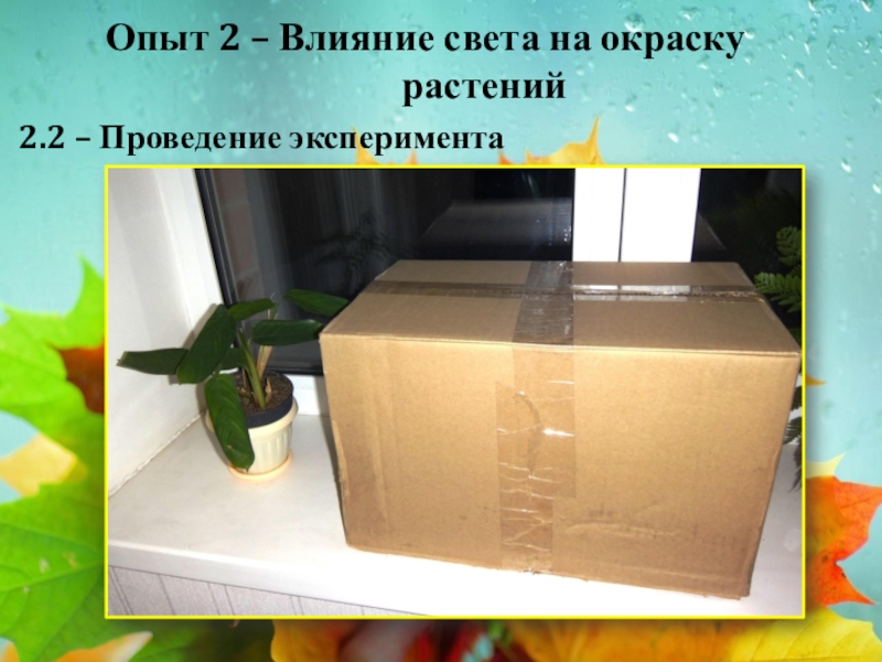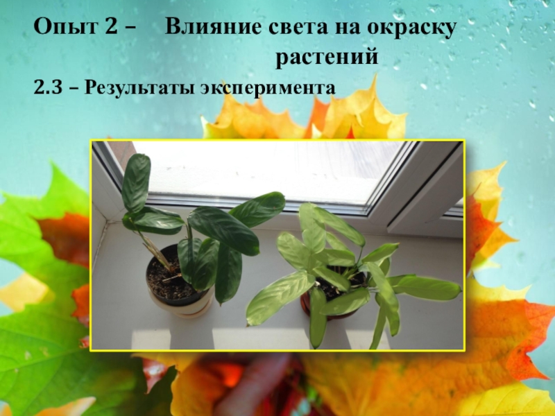 Слайд 15Опыт 2 – Влияние света на окраску растений