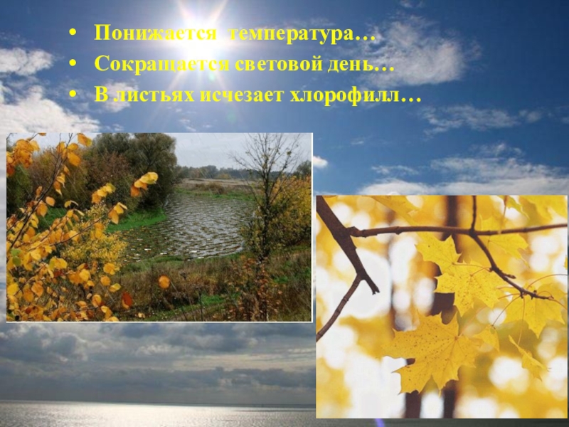 Понижается температура…Сокращается световой день…В листьях исчезает хлорофилл…
