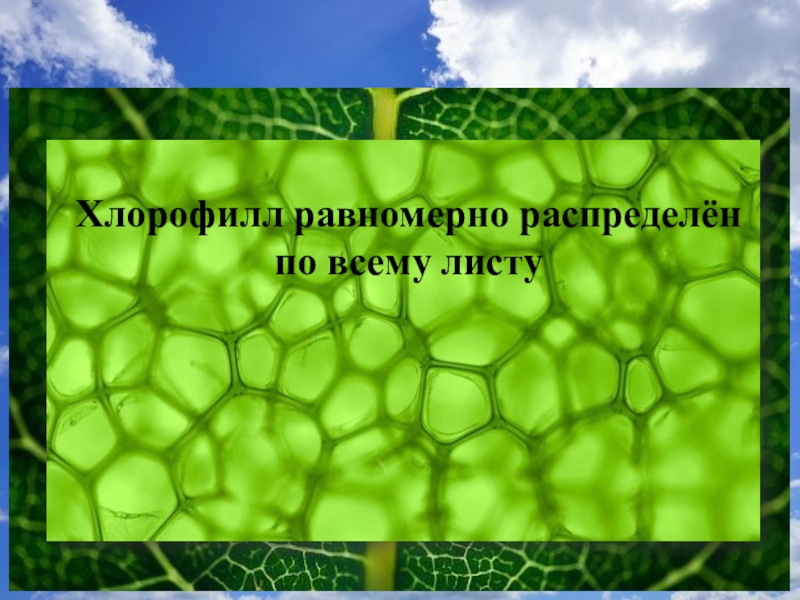 Слайд 12Хлорофилл равномерно распределён по всему листу