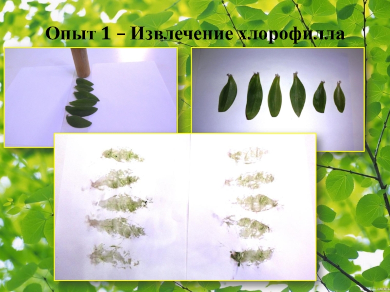 Слайд 14Опыт 1 – Извлечение хлорофилла