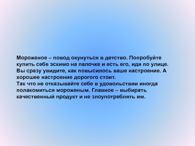 Слайд 21Мороженое – повод окунуться в детство. Попробуйте купить себе эскимо на