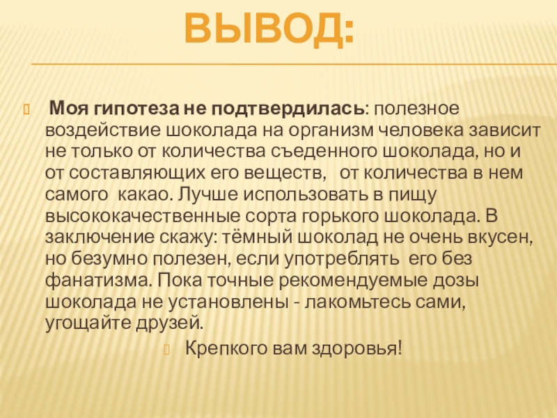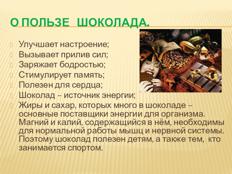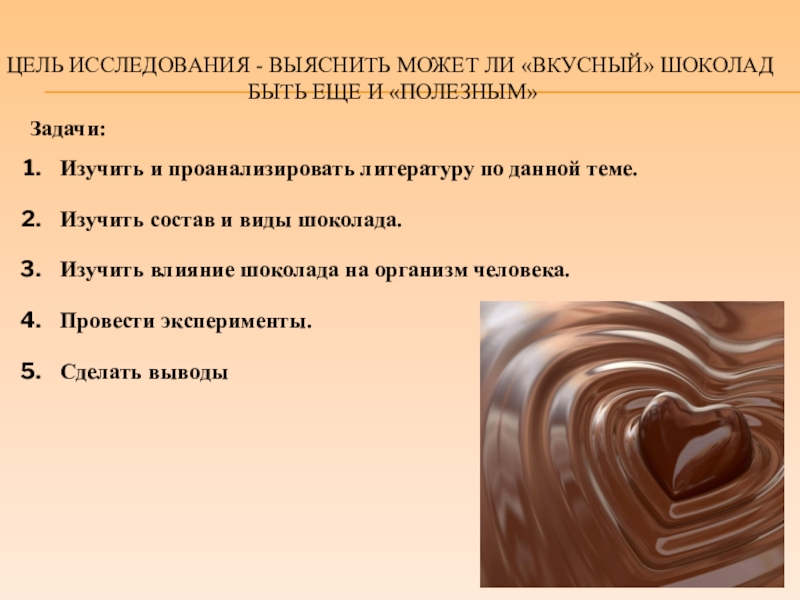 ЦЕЛЬ ИССЛЕДОВАНИЯ - ВЫЯСНИТЬ МОЖЕТ ЛИ «ВКУСНЫЙ» ШОКОЛАД