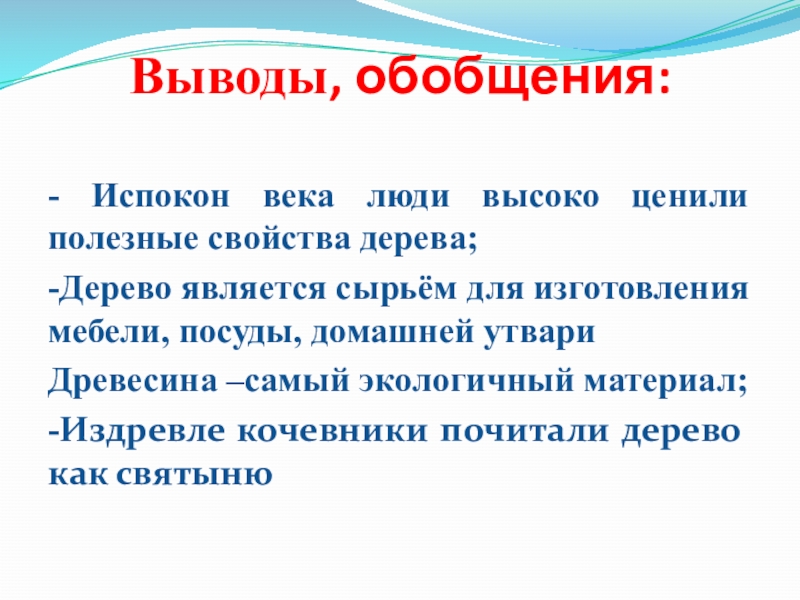 - Испокон века люди высоко ценили полезные свойства дерева;