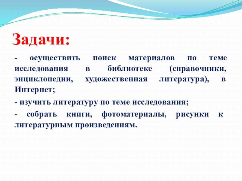 - осуществить поиск материалов по теме исследования в библиотеке (справочники, энциклопедии,