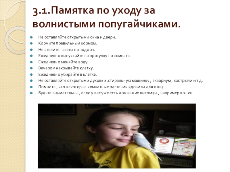 3.1.Памятка по уходу за волнистыми попугайчиками.