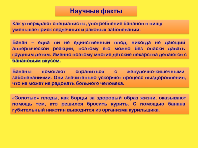 Банан – едва ли не единственный плод, никогда не дающий аллергической реакции, поэтому его можно без опаски давать грудным детям. Именно поэтому многие детские лекарства делаются с банановым вкусом.