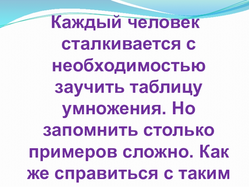 Слайд 2Каждый человек сталкивается с необходимостью заучить таблицу умножения. Но запомнить столько