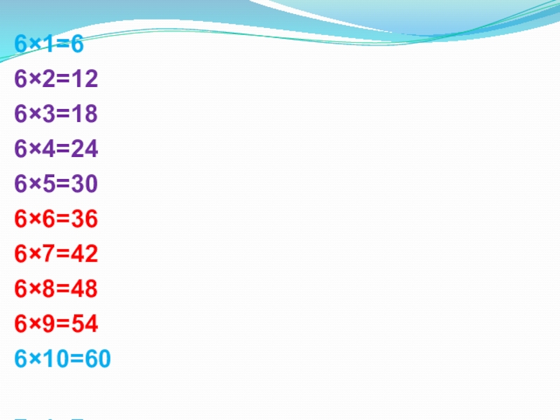 6×1=66×2=126×3=186×4=246×5=306×6=366×7=426×8=486×9=546×10=607×1=77×2=147×3=217×4=287×5=357×6=427×7=497×8=567×9=637×10=708×1=88×2=168×3=248×4=328×5=408×6=488×7=568×8=648×9=728×10=80 9×1=99×2=189×3=279×4=369×5=459×6=549×7=639×8=729×9=819×10=90
