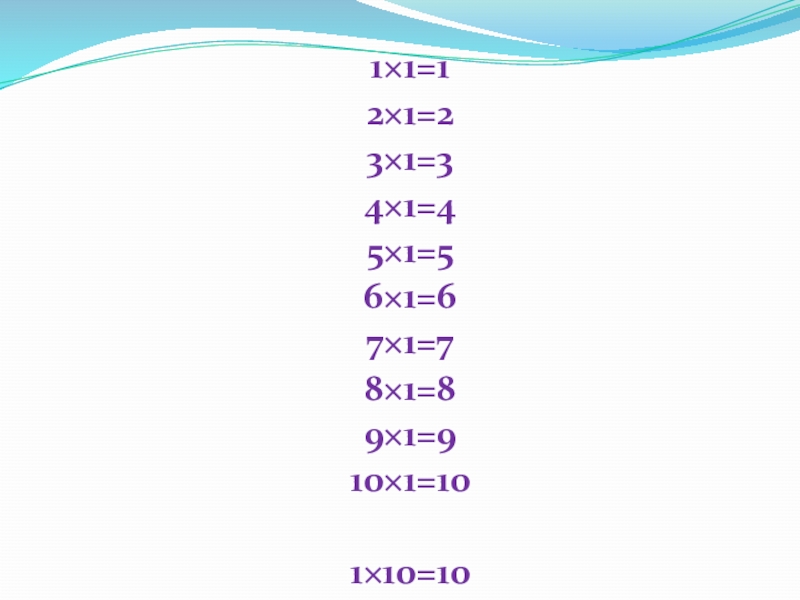 1×1=12×1=23×1=34×1=45×1=56×1=67×1=78×1=89×1=910×1=101×10=102×10=203×10=304×10=405×10=506×10=607×10=708×10=809×10=9010×10=100