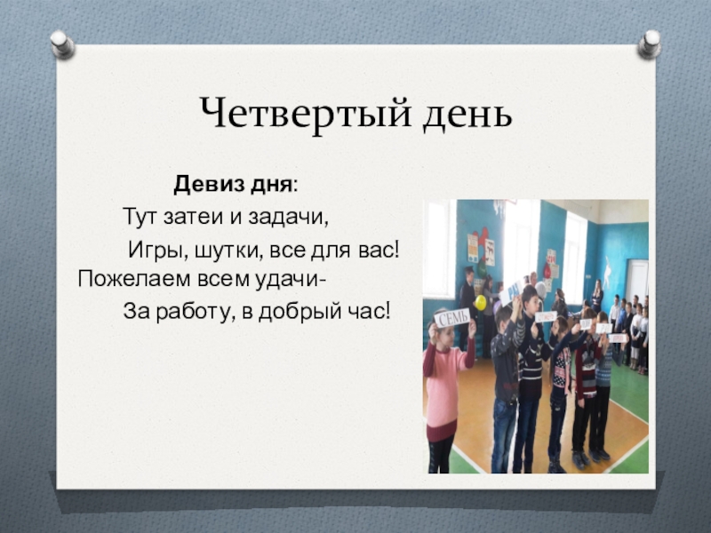 Четвертый день          Девиз дня: