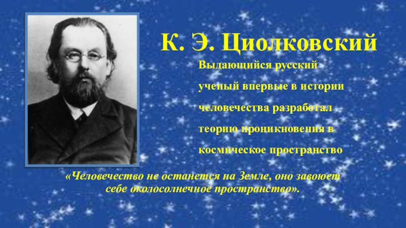 Выдающийся русский ученый впервые в истории человечества разработал теорию проникновения в космическое пространство