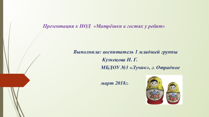 Выполнила: воспитатель 1 младшей группы
