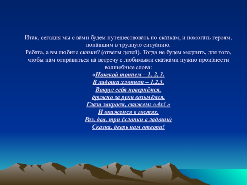 Слайд 2Итак, сегодня мы с вами будем путешествовать по сказкам, и помогать