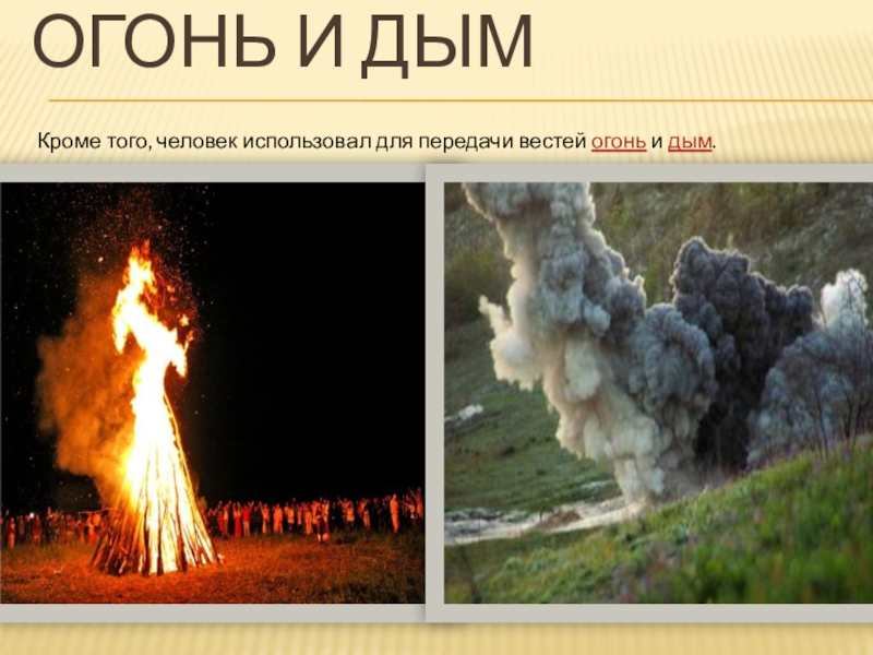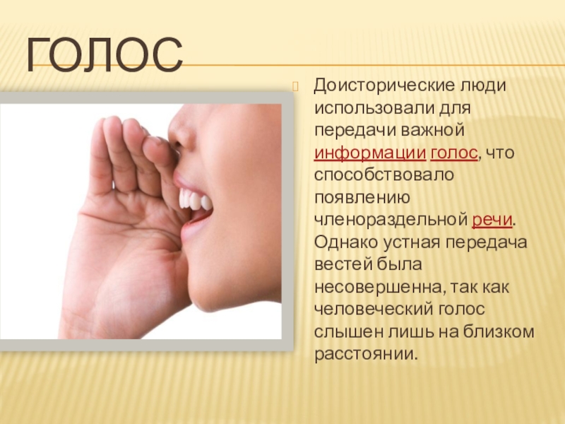 речи. Однако устная передача вестей была несовершенна, так как человеческий голос слышен лишь на близком расстоянии.