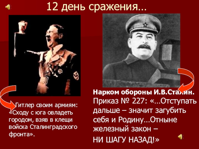 Нарком обороны И.В.Сталин. Приказ № 227: «…Отступать дальше – значит загубить себя и Родину…Отныне железный закон –