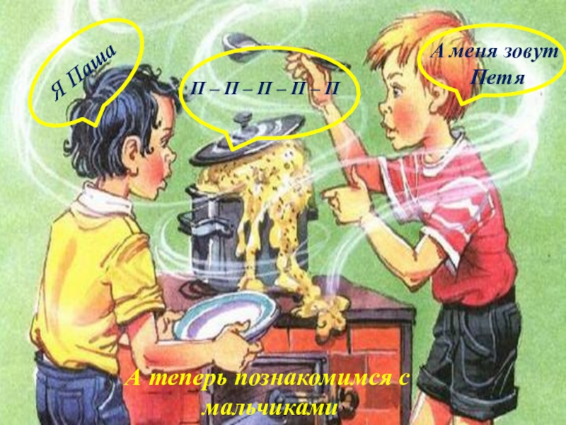 П – П – П – П – П А теперь познакомимся с мальчикамиА меня зовут ПетяЯ
