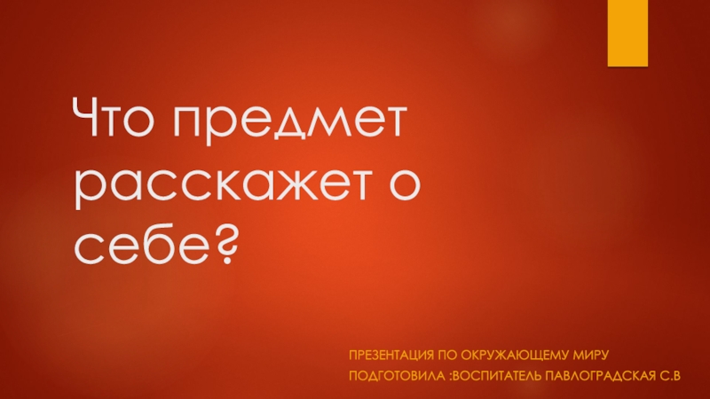 Что предмет расскажет о себе?Презентация по окружающему мируПодготовила :Воспитатель ПАВЛОГРАДСКАЯ С.В