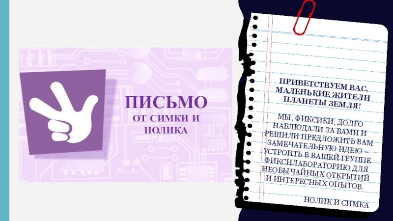 Мы, фиксики, долго наблюдали за вами и решили предложить вам замечательную идею – устроить в вашей группе фиксилабораторию для необычайных открытий и интересных опытов.