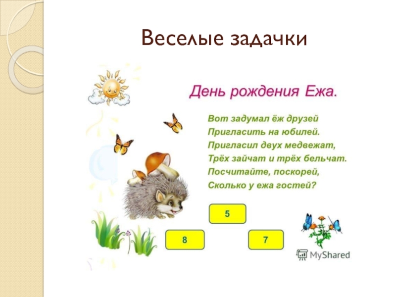 Цель – закрепление ранее изученного материалаЗадачи:Закрепить понятия «геометрические фигуры» и состав числа;Закрепить умение различать диких и домашних