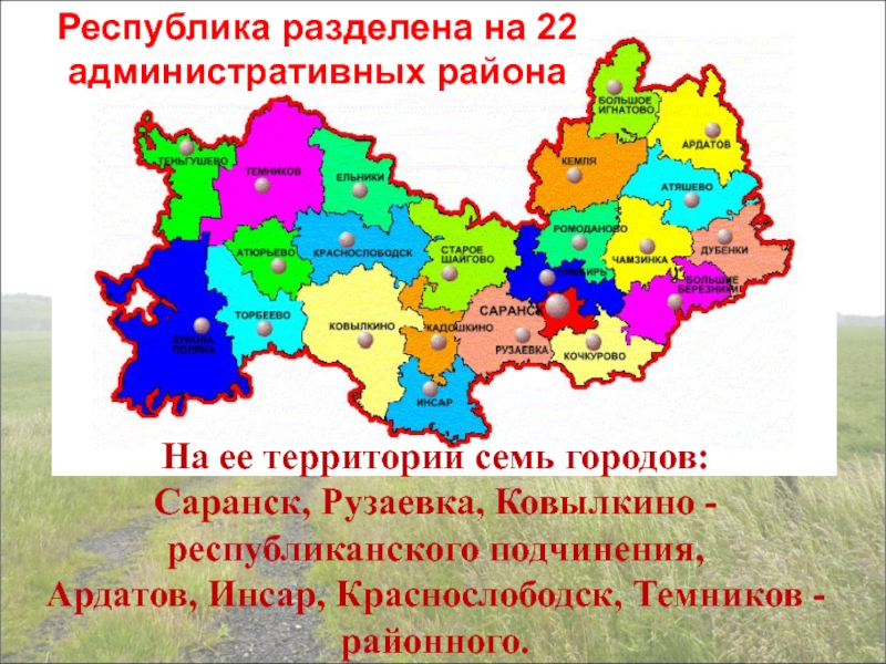 Республика разделена на 22 административных района
