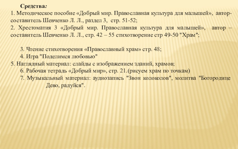 христиан; обогащать словарный запас детей понятиями духовно-нравственной культуры.