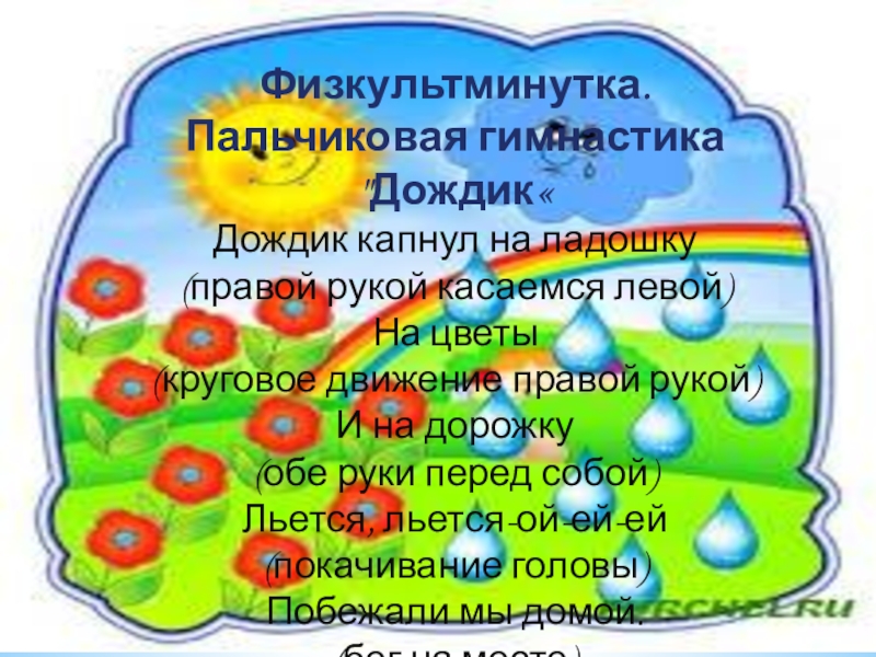 Слайд 10Физкультминутка. Пальчиковая гимнастика "Дождик«