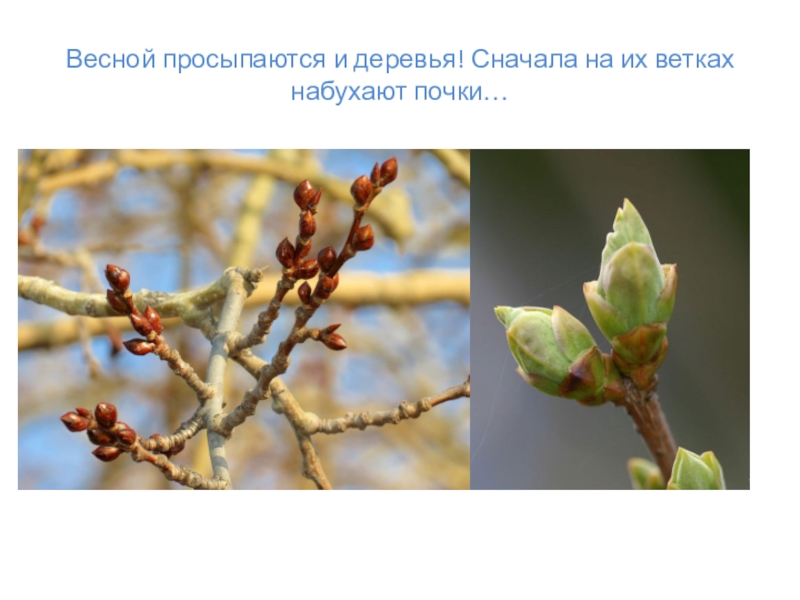 Слайд 8Весной просыпаются и деревья! Сначала на их ветках набухают почки…