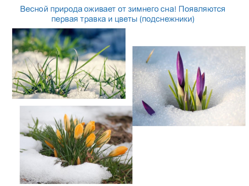 Слайд 7Весной природа оживает от зимнего сна! Появляются первая травка и цветы