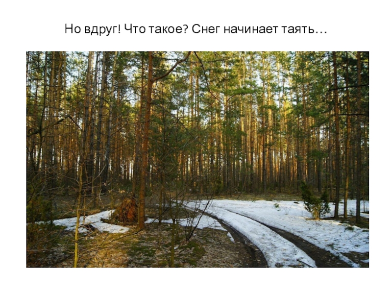 Слайд 3Но вдруг! Что такое? Снег начинает таять…