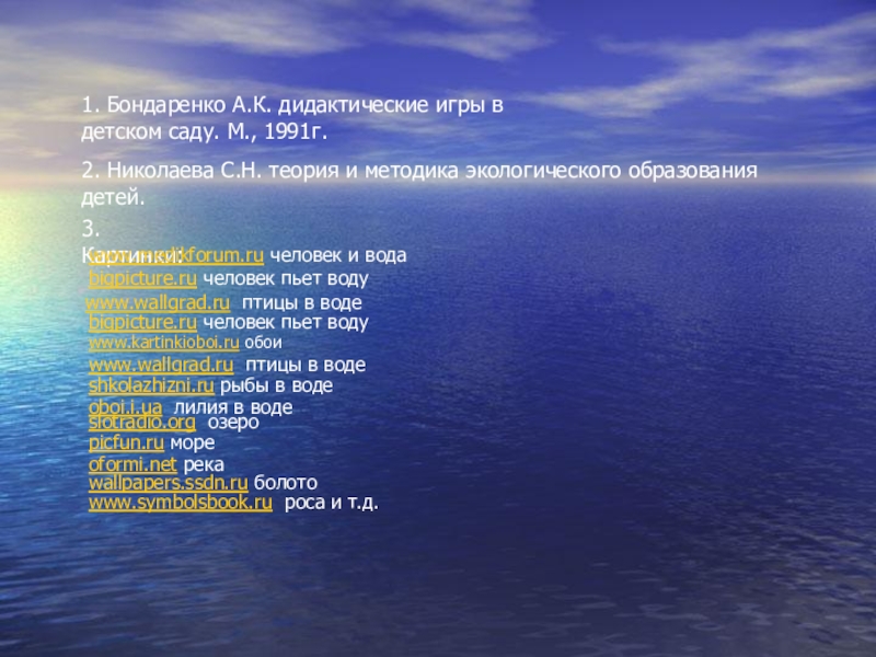 2. Николаева С.Н. теория и методика экологического образования детей.