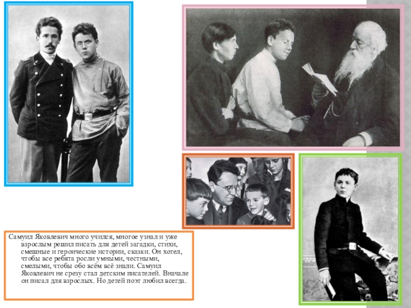 Самуил Яковлевич много учился, многое узнал и уже взрослым решил писать для детей загадки, стихи, смешные и