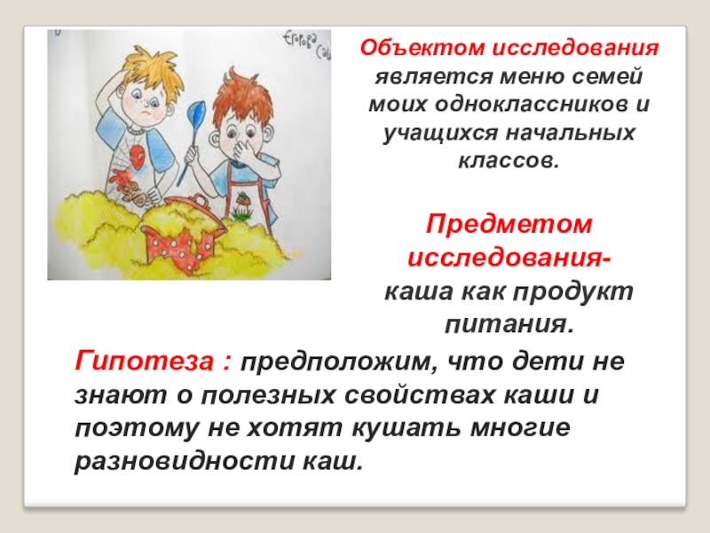 Объектом исследования является меню семей моих одноклассников и учащихся начальных классов.