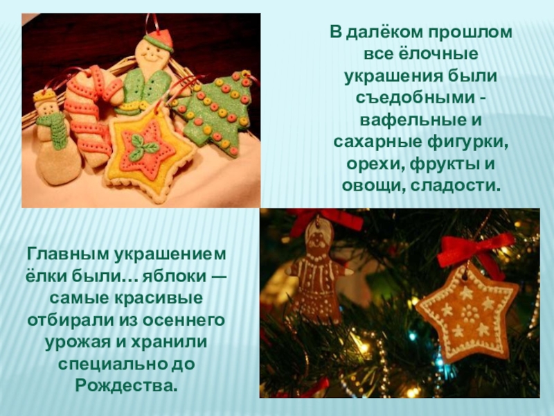 Главным украшением ёлки были… яблоки — самые красивые отбирали из осеннего урожая и хранили специально до Рождества.