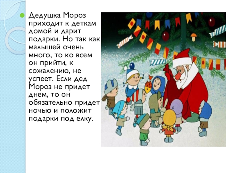Слайд 7Дедушка Мороз приходит к деткам домой и дарит подарки. Но так