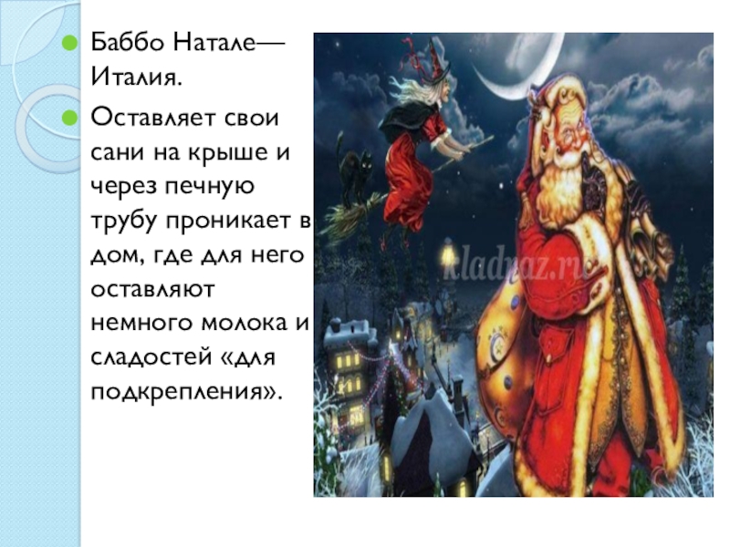проникает в дом, где для него оставляют немного молока и сладостей «для подкрепления».