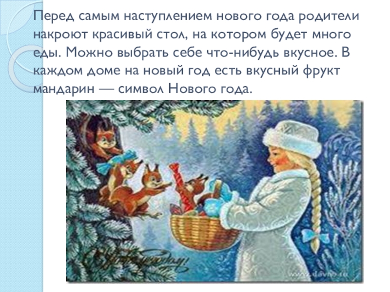 Слайд 9Перед самым наступлением нового года родители накроют красивый стол, на котором