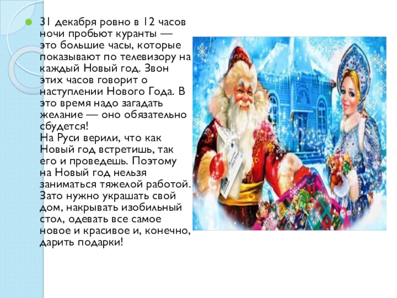 Слайд 1031 декабря ровно в 12 часов ночи пробьют куранты — это