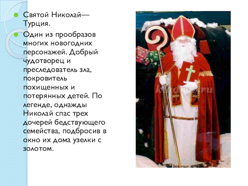 Один из прообразов многих новогодних персонажей. Добрый чудотворец и