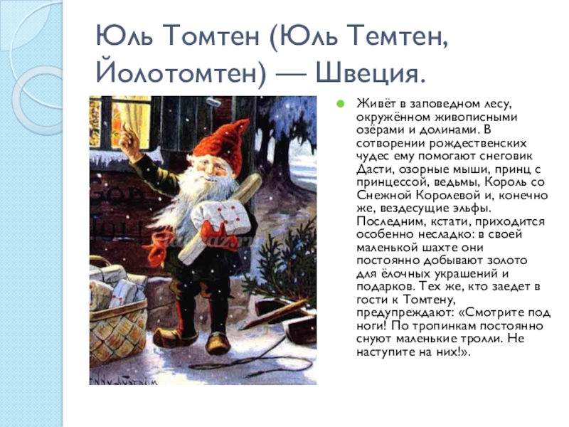 Слайд 24Юль Томтен (Юль Темтен, Йолотомтен) — Швеция.