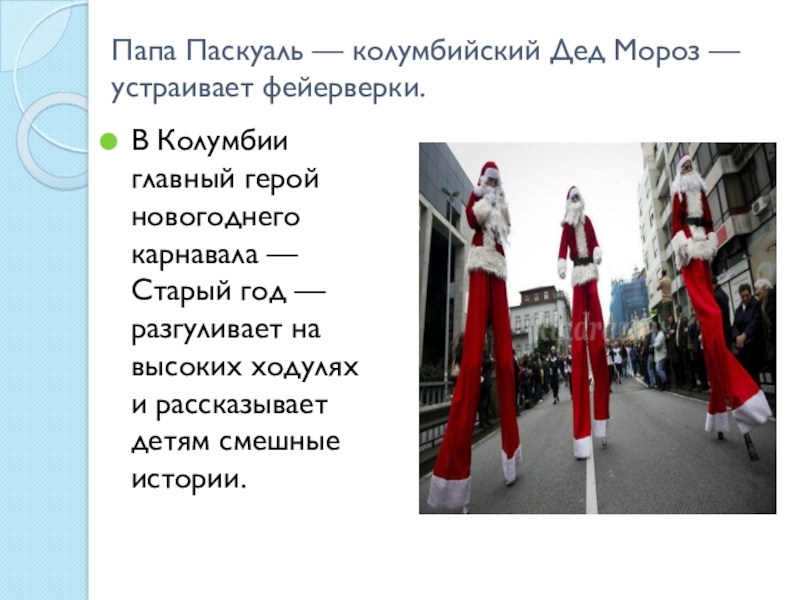 Слайд 23Папа Паскуаль — колумбийский Дед Мороз — устраивает фейерверки.