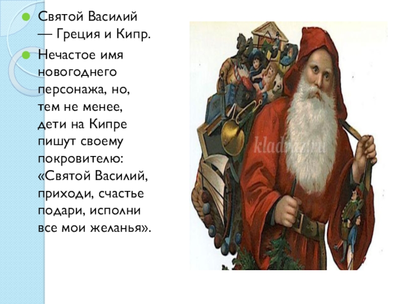 не менее, дети на Кипре пишут своему покровителю: «Святой Василий, приходи, счастье подари, исполни все мои желанья».