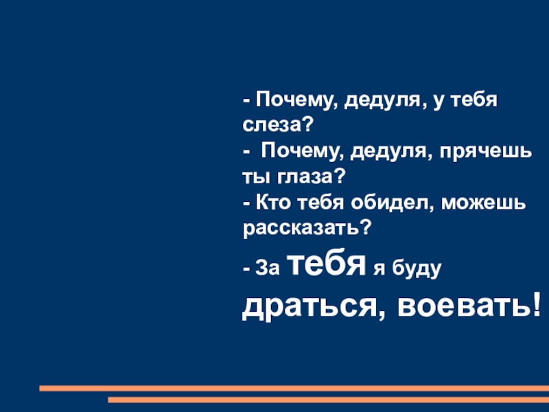 - Почему, дедуля, прячешь ты глаза?