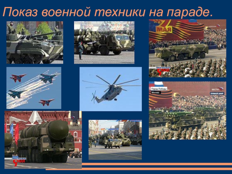 Слайд 17Показ военной техники на параде.