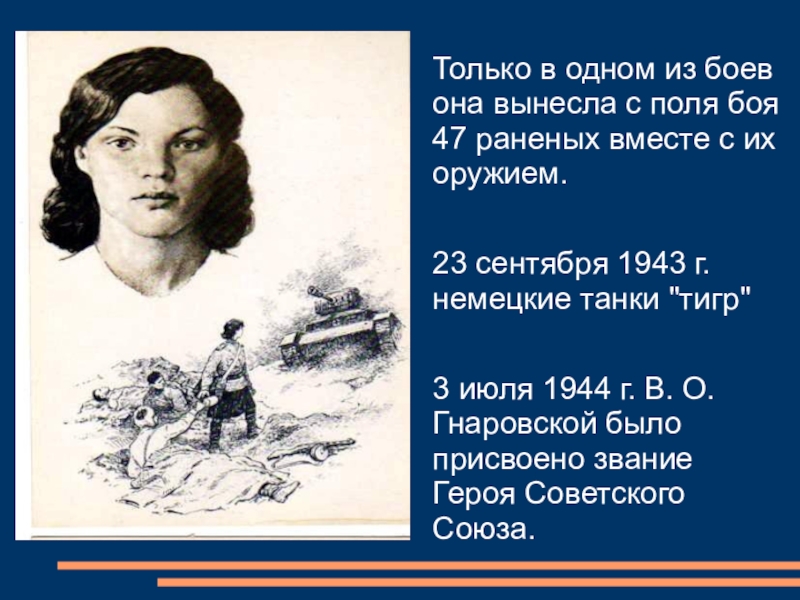 Слайд 13Только в одном из боев она вынесла с поля боя 47