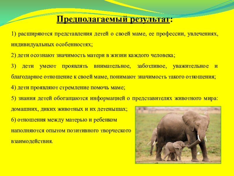 дать основную информацию о роли взрослых особей в жизни детенышей животных;