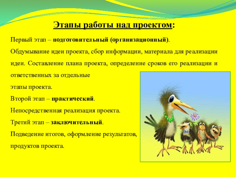 сбор информации, материала для реализации идеи. Составление плана проекта, определение сроков его реализации и ответственных за отдельные